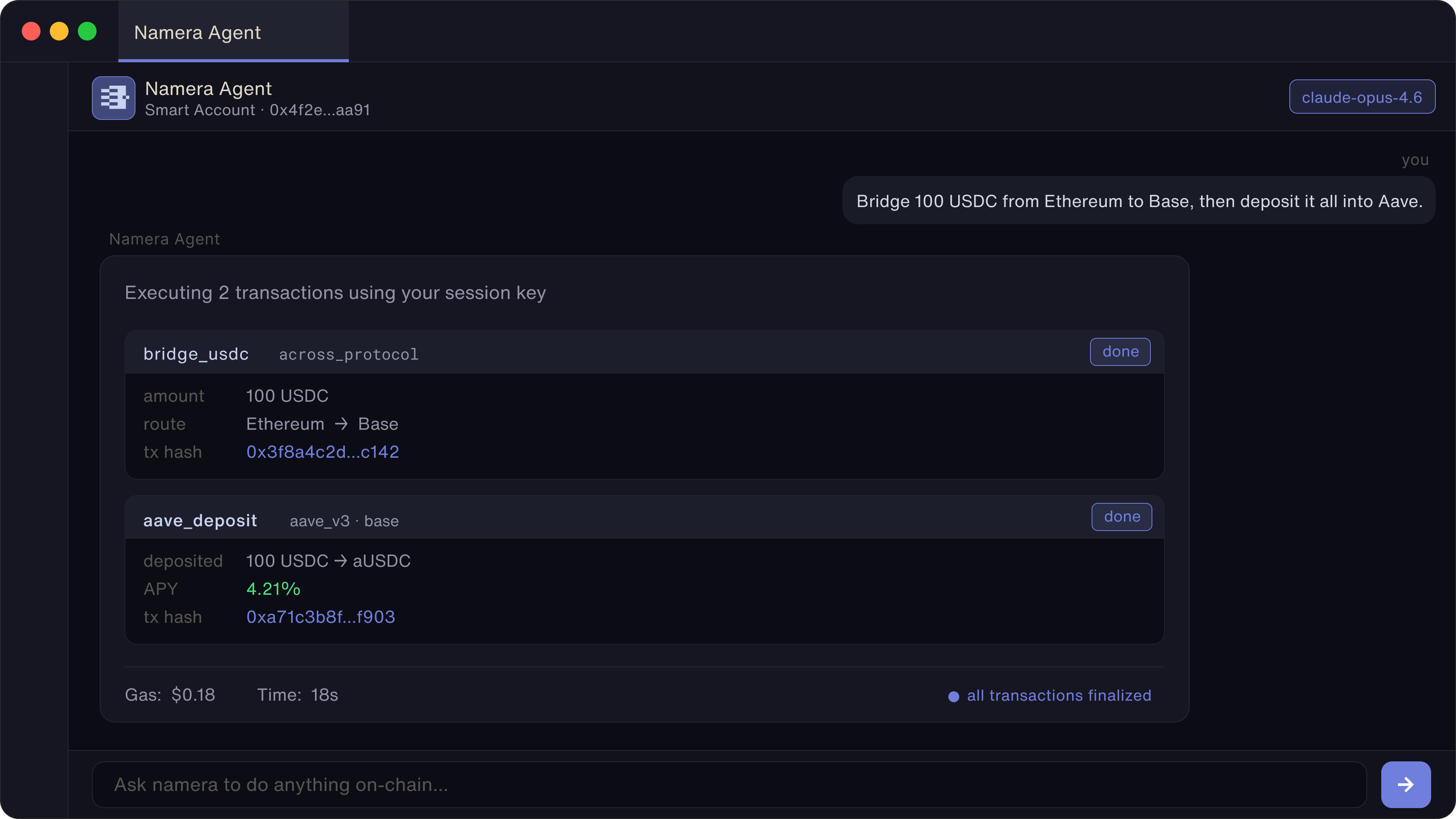 Define fine-grained permissions with session keys and let agents execute transactions on your behalf.